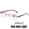 Randlose Bifokal-Lesebrille Unisex Vintage Fern-Nahsicht Progressive Brille Blaulichtfilter Altersweitsichtige Brille