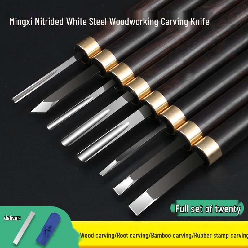 Nitriertes Weißstahl Holzschnitzmesser mit Griff aus lila Sandelholz