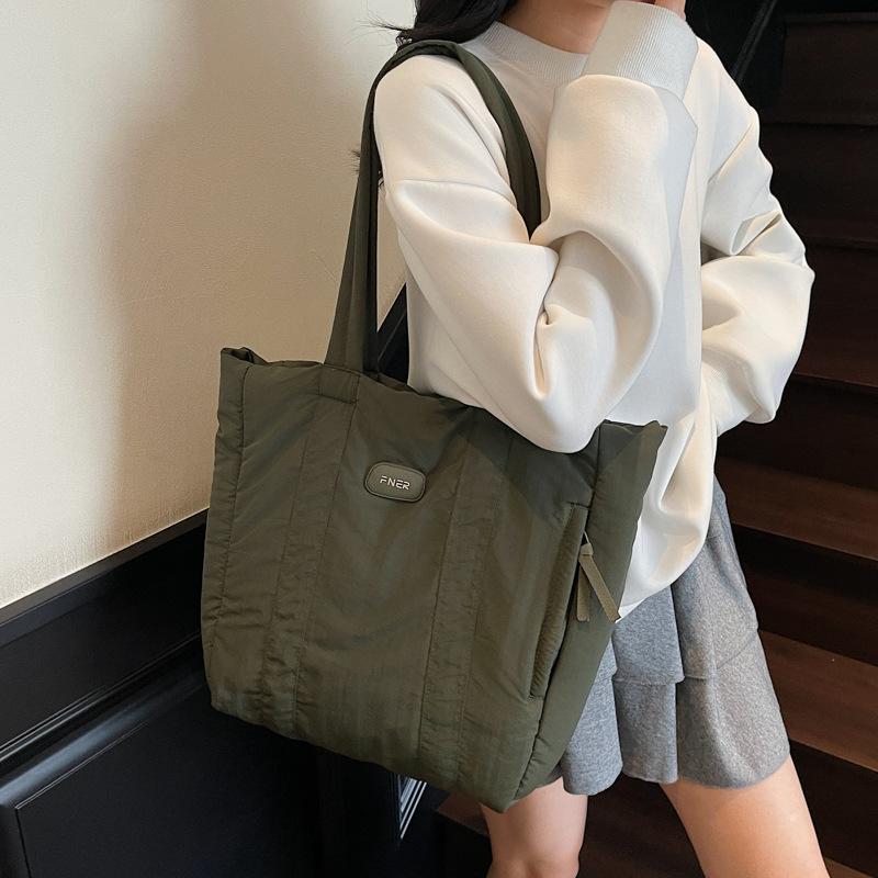 Soft waxy cloth bag Female students class shoulder bag Large capacity commuter handbag 2025 New nylon cloth tote bag