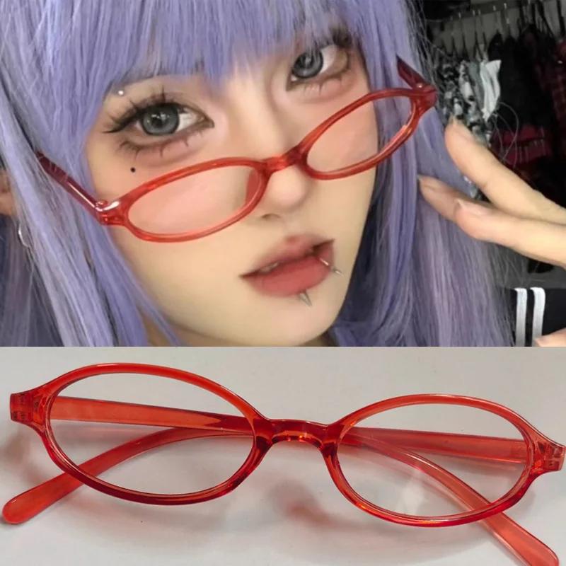 New Women'S Retro Oval Glasses Girls Red Green Frame Glass Eyewear Decorative Computer Anti-Blue Eyeglasses Seaside Driving