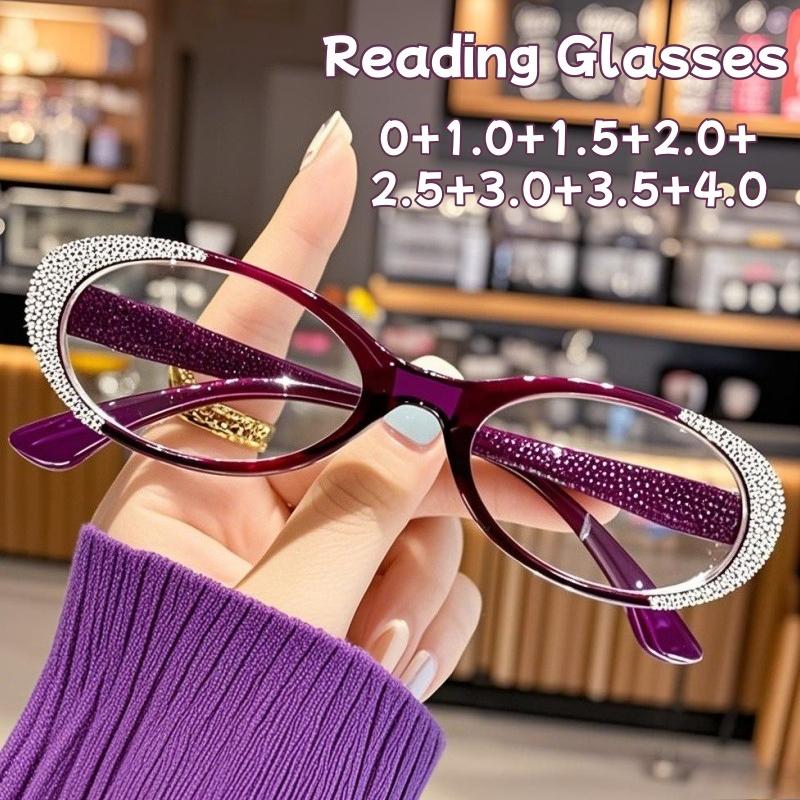 Diamanten Damenmode Kleiner Rahmen Blaulichtfilter Alterssichtigkeit Brille Transparente Gläser Luxus Lesebrille für ältere Menschen