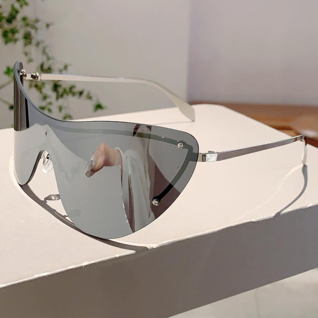 Vintage One Piece Cat Eye Sunglasses Women For Men Luxury Brand Designer Sun Glasses Popular Outdoor Goggle Punk Rivet Shades