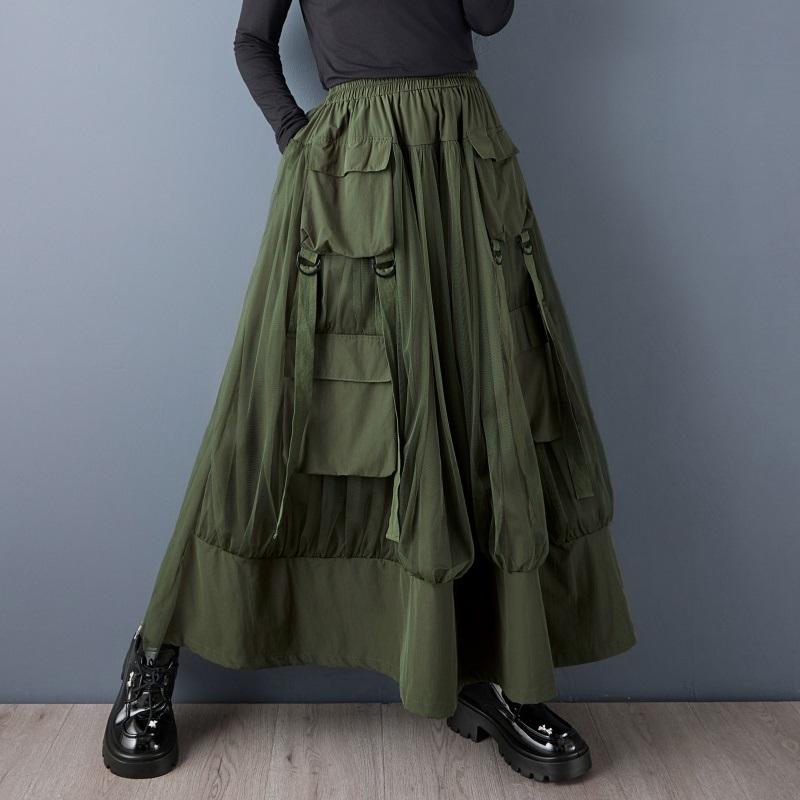 Mesh plus größe Hohe taille vintage Frühling sommer herbst beiläufige lose lange für frau röcke frauen rock