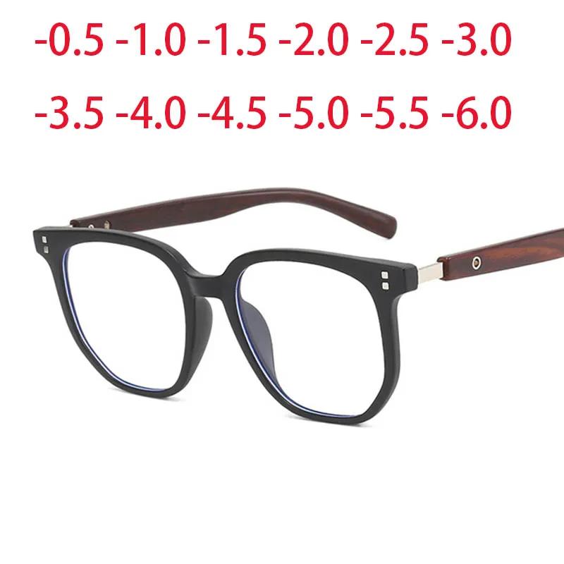 Quadratische Herren-Myopie-Brille mit Holzmaserung-Bügeln und Metallnieten Kurzsichtigkeitsbrille 0 -0.5 -1 -1.25 -1.5 -1.75 -2.0 Bis -6