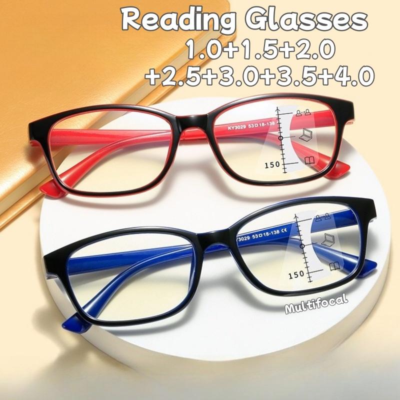 Thick Frame Multifocal Progressive Presbyopia Glasses Transparent Lenses Spring-Loaded Reading Glasses For The Elderly
