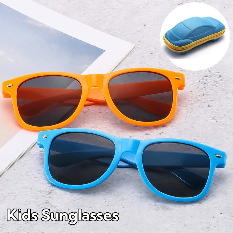 Cute Retro Kids Sunglasses With Glasses Box Girls Boys Uv400 Ultra Light Sun Protection Travel Safety Shades Eyeglasses