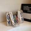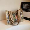 Commuter large-capacity alphabet canvas bag women's new fashion college student shoulder tote bag portable leisure bag