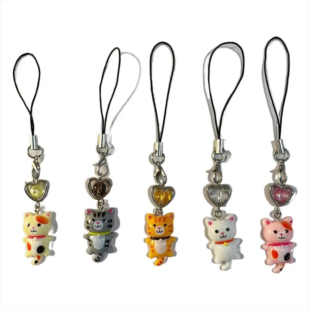 Cat Pendant Cat Phone Strap Cellphone Chain Anti Lost Y2K Phone Charm Key Ring Heart Phone Lanyard Backpack Ornament