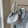 Crossbody bag Korean simple personality casual versatile portable shoulder bag drawstring pleated large capacity nylon bucket bag