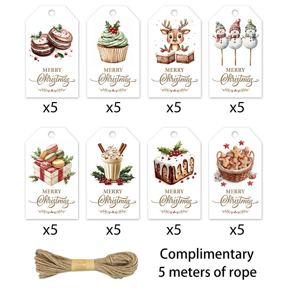 40pcs, Christmas tags, gift labels, party decorations, DIY cards, holiday home decor, greeting cards, party cards, gift twine