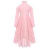 Mädchen Elegantes Partykleid Neckholder Schulterfrei Langarm Hohe Taille Rüschen Unregelmäßiger Saum Fake Diamanten Design Kleid