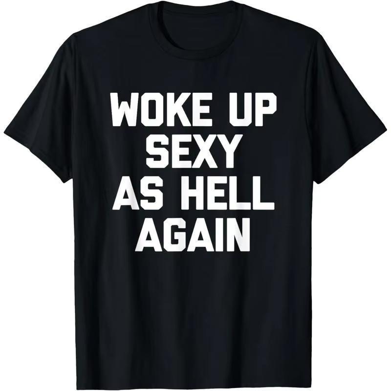 HEISSER VERKAUF Wieder verdammt sexy aufgewacht Lustige Memes Herren T-Shirt Damen Weiche und bequeme Baumwolle Lustiger Spruch Sarkastisches T-Shirt