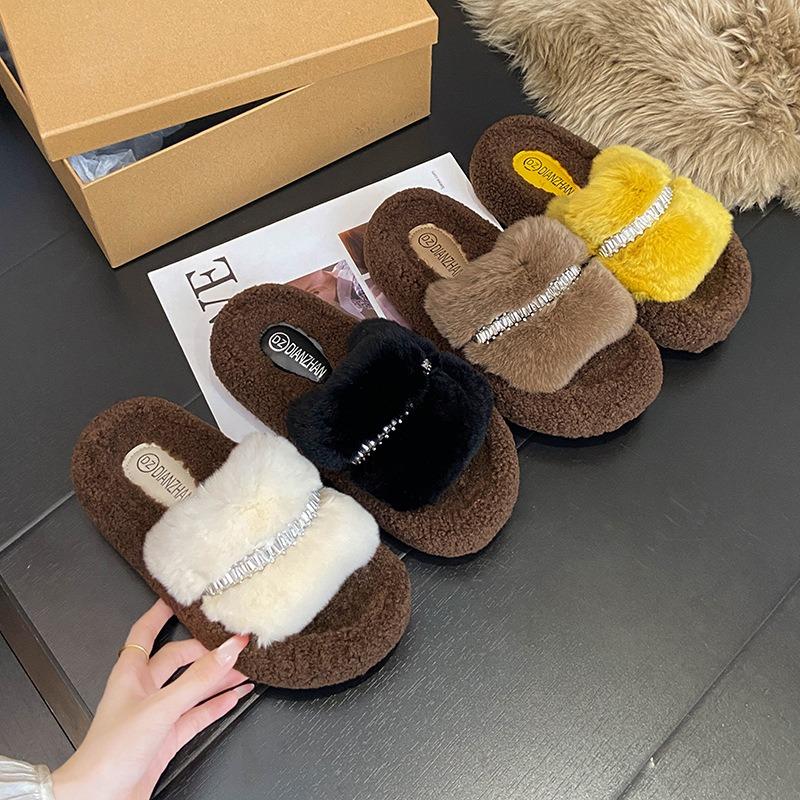 Neue flauschige Damenpantoffeln mit dickem Boden, rutschfest mit dickem Boden, modische und vielseitige Ein-Wort-Pantoletten, hochwertige Plüschpantoffeln für Damen