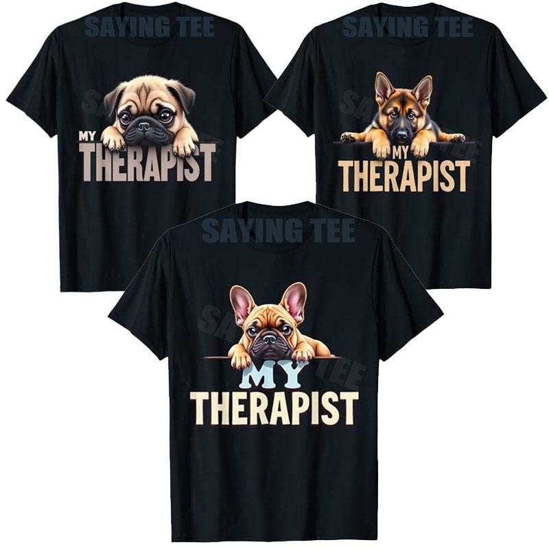 Lustiger Frenchie GSD Shep Welpe Mein Therapeut Französische Bulldogge Hund T-Shirt Y2k Schäferhund Liebhaber Grafik Top Niedliches Mops-T-Shirt