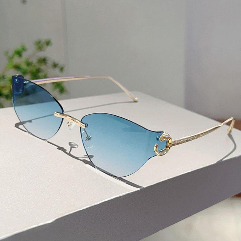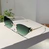 Popular Vintage Rimless Cat Eye Sunglasses Women For Men Luxury Brand Designer Sun Glasses Punk Metal Leopard Head Shades Uv
