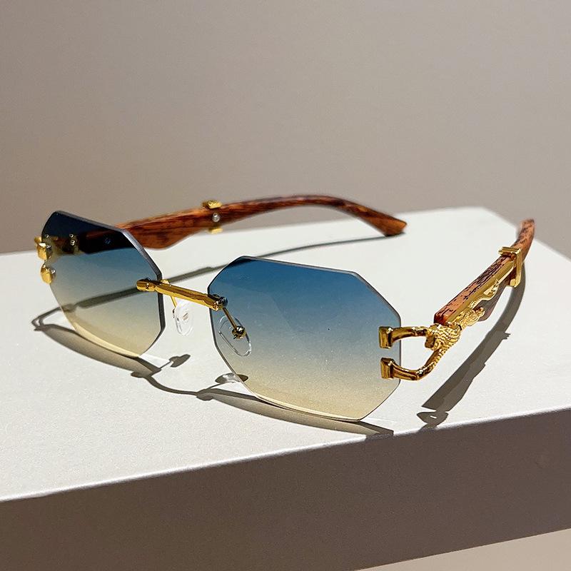 Vintage Fashion Steampunk Rimless Sunglasses Women For Men Luxury Brand Designer Irregular Sun Glasses Metal Leopard Head Shades