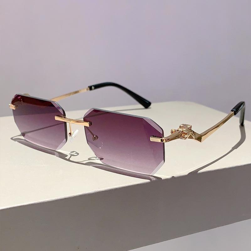 Punk Rimless Vintage Square Sunglasses Women For Men Luxury Brand Designer Sun Glasses Popular Outdoor Metal Leopard Shade Uv400