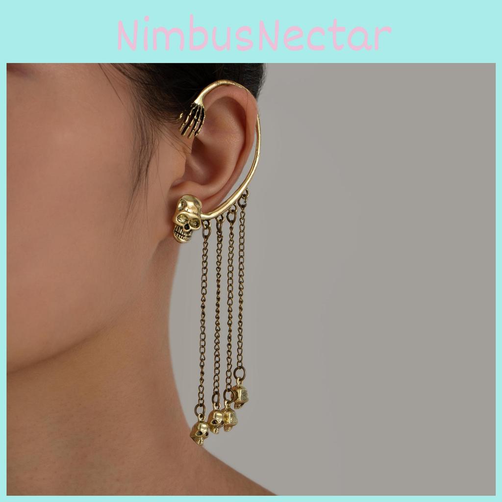 Gothic Schädel Einzigartige Kopf-Ohrringe Mit Exquisiten Langen Quasten Für Männer Und Mode-Damen