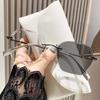 Frameless Diamond Studded Color Changing Myopia Glasses Fashion Oversized Frame Photochromic Eyewear Utral Ight Minus Eyeglasses