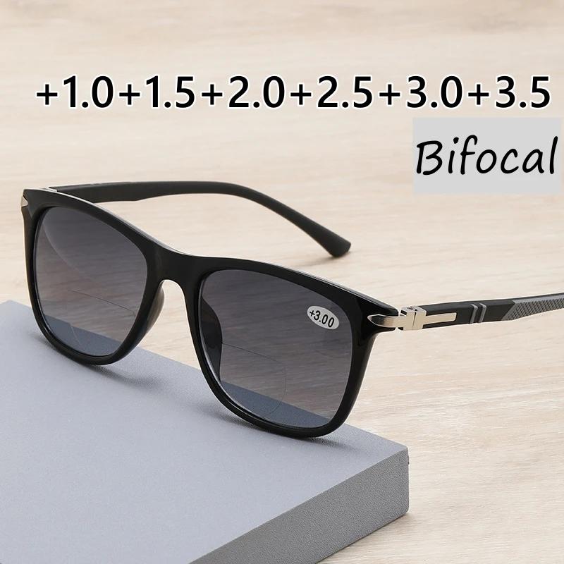 Unisex Bifokale Lesebrille Klassische Quadratische Gläser Alterssichtigkeit Nah- und Fernbrille Vintage UV-Schutz Sportsonnenbrille +3.5