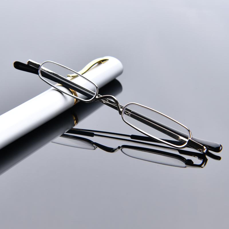 Elegante Tragbare Mini-Lesebrille Herren Metallrahmen Stiftebox Ultradünn Damen Ultraleicht Alterssichtigkeit Brille Mit Box