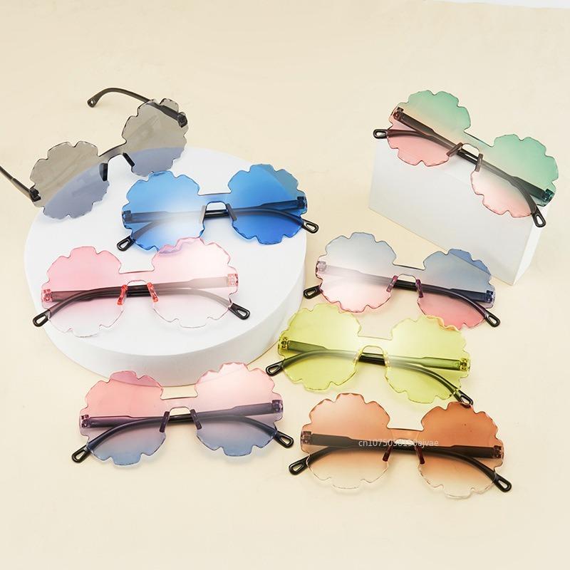 Luxury Round Children'S Sunglasses Rimless Shades Sun Glasses For Boys Girls Vintage Flower Shape Sun Glasses Eyewear Uv400