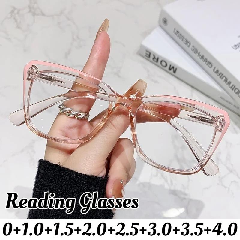 Unisex Fashion Transparent Frame Reading Glasses Men'S And Women'S Fashion Large Frame Hd Anti-Blue Light Farsighted Glasses