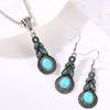 High quality simple ethnic style geometric adjustable necklace stud earrings set, fashionable fringed pendant turquoise accessories