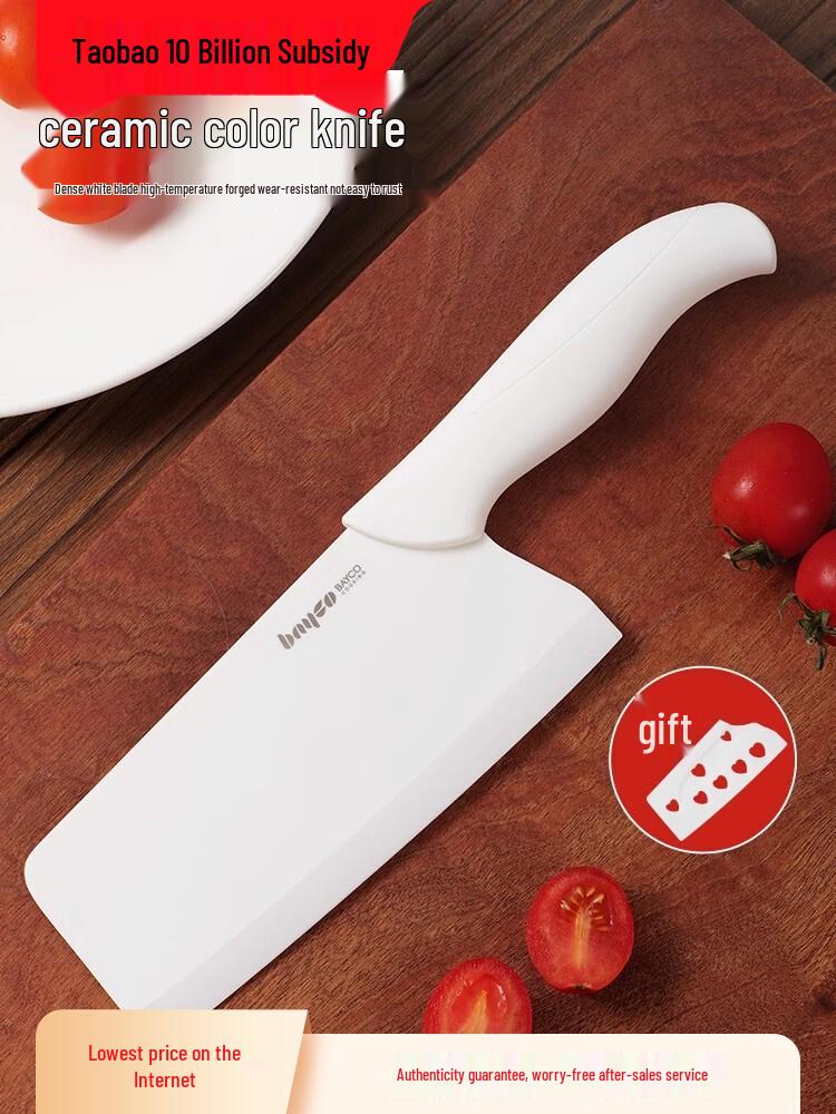 Beige Keramik-Hackmesser für Frauen – Großes, verdicktes, schärffreies Messer für Fleisch & Babynahrung.