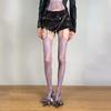 Retro Purple Jacquard Suspender Stockings - Sexy Irregular Ripped Y2K Pantyhose for Women