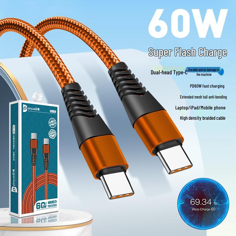 PD60W Geflochtenes C-zu-C Schnellladekabel für Apple/Huawei TYPEC Geräte