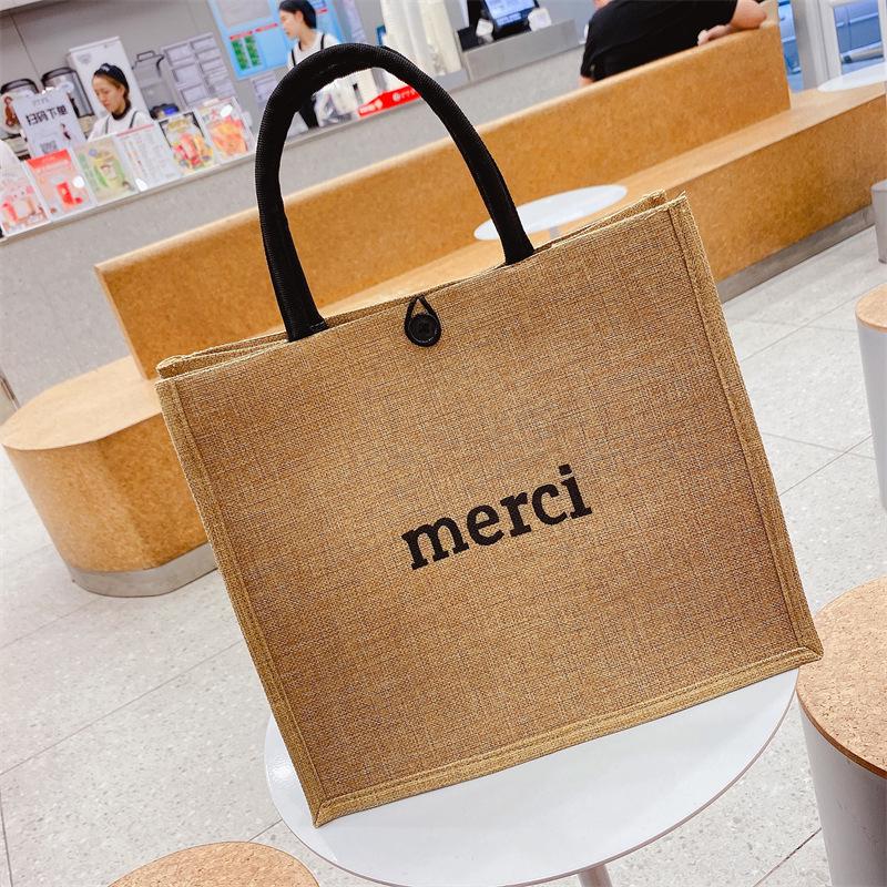 Damen Jute Tragetasche - Große Kapazität Leinen Lunch- & Einkaufstasche