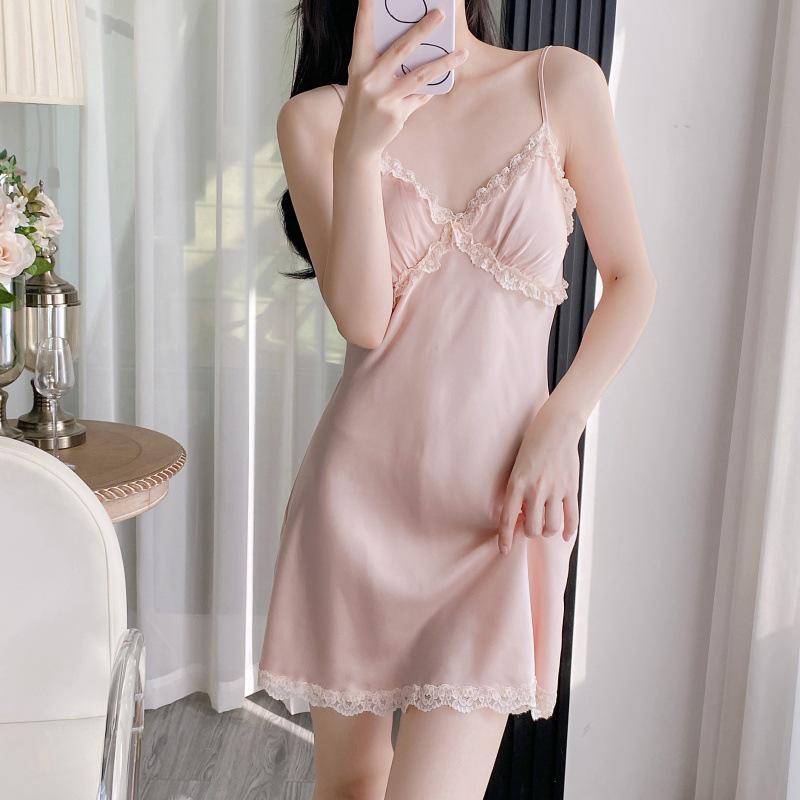 Damen Spitzen V-Ausschnitt Eisseide Pyjama Set mit Brustpolstern