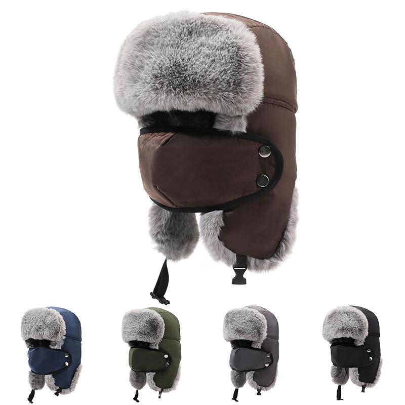 Men Winter Mask Bomber Hat Velvet Thick Cycling Outdoor Warm Ski Hat Ear Protection Cotton Hat