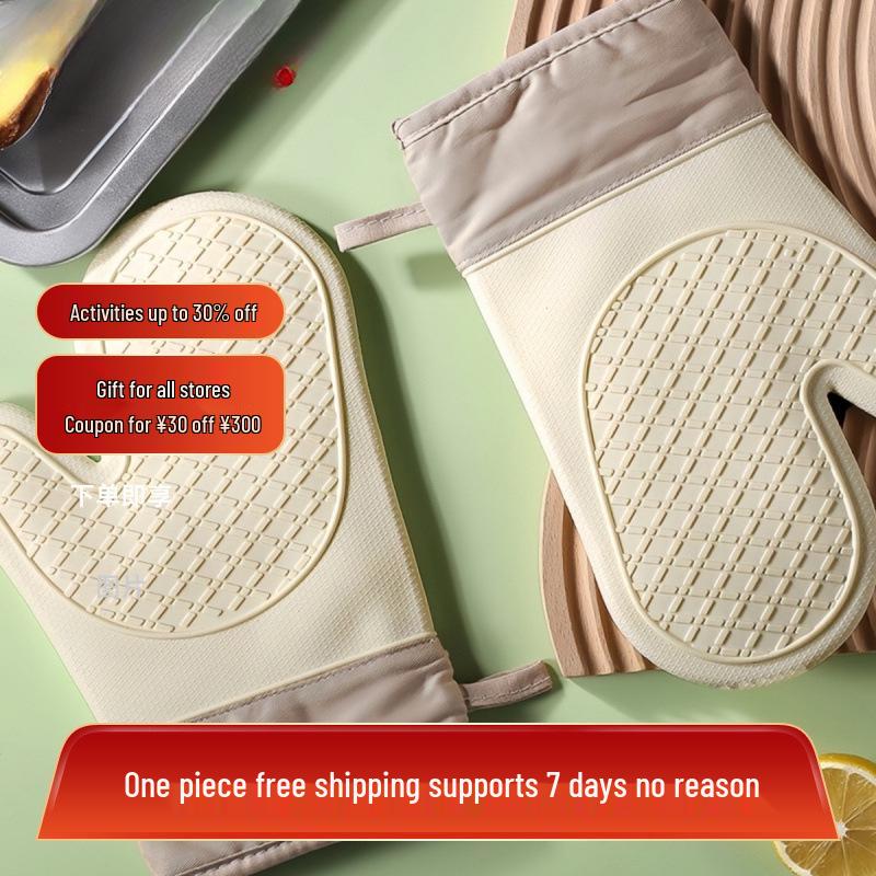 Auf Lager Beige Silikon Anti-Verbrühungs-Rutschfeste Baumwollgepolsterte Hitzebeständige Handschuhe für Mikrowelle und Backen