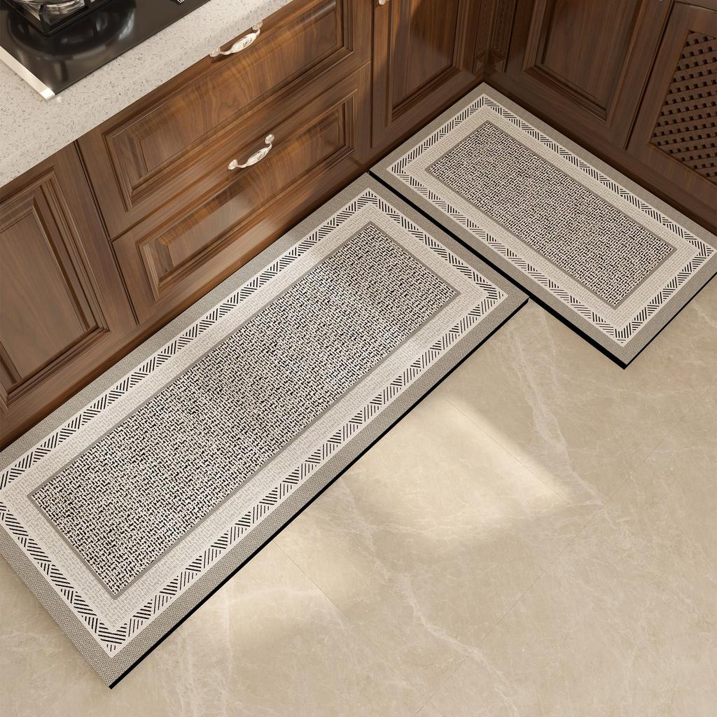 Kitchen Floor Mat Waterproof Non-slip Oil-resistant Leather Carpet PVC Gray Geometric Rug Home Decoration Mat Alfombra Cocina