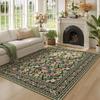 Rugs for Living Room Washable Vintage Floral Non Slip Low Pile Large Carpet for Bedroom Dining Room Nursery Play Beige Floor Mat