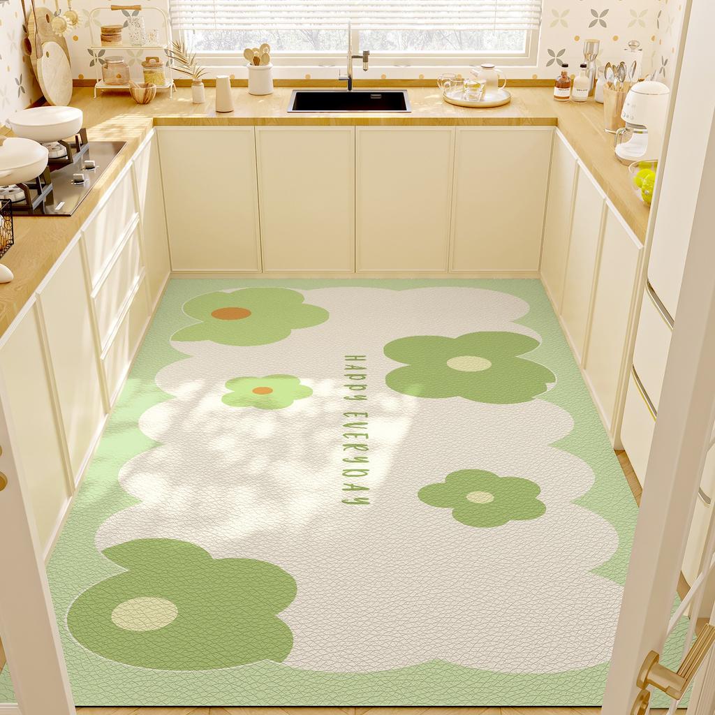 Kitchen Floor Mat Home Waterproof Oil-proof PVC Dirt-resistant Wipeable Wash-free Rug Large Area Carpet