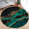 Abstrakter Marmor Runder Bereichsteppich – Grüner Tinte & Goldlinien-Design – Moderner Luxusteppich für Wohnzimmer oder Schlafzimmer, Weiche Fußmatte