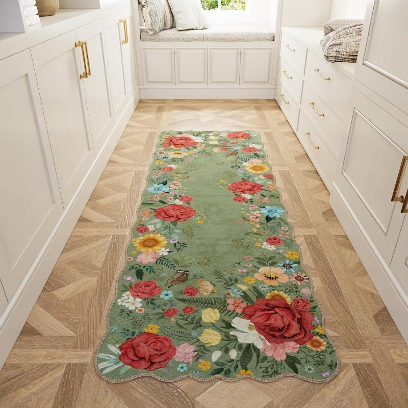Fashion Flower runner Rug Washable Foldable Non-slip Bedroom Bedside Mat Light Luxury Home Decoration Soft Corridor Carpet