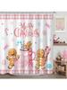 Frohe Weihnachten Duschvorhang Rosa Kariert Niedlich Lebkuchenmann Duschvorhang Mit 12 Haken Winter Schneeflocke Weihnachten Süßigkeiten Bad