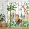 Wildtier Duschvorhang Dschungel Elefant Giraffe Zebra Regenwald Tropisch Safari Badezimmer Heimdeko Wasserdicht Polyester
