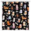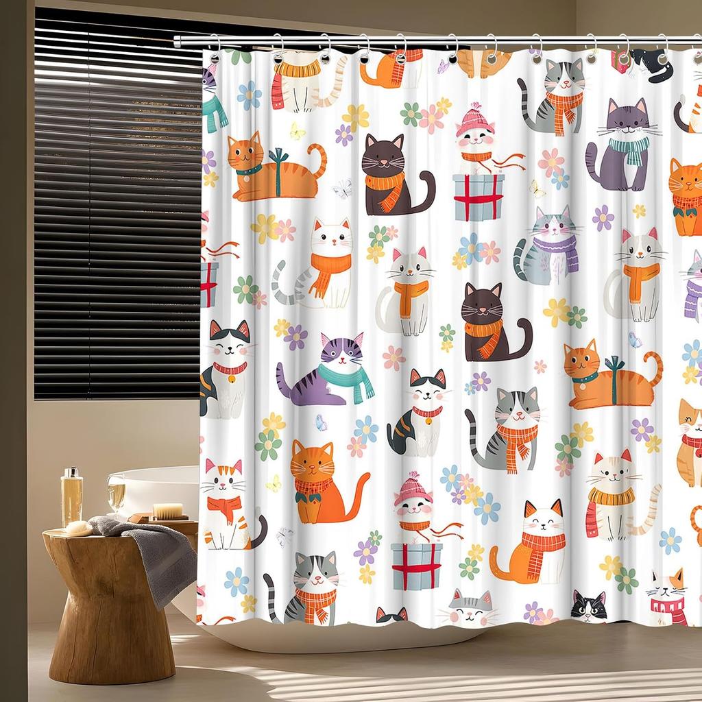 Lustiger Katze Duschvorhang Abstraktes Kätzchen Bunt Niedlich Floral Schmetterling Liebliche Haustiere Cartoon Tier Wildblume Modern Minimalismus