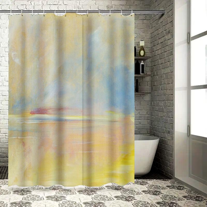 Gelb Blau Duschvorhang Badezimmerdeko Für Zuhause Badezimmer Aquarelldruck Einfache Installation Mit Hakenring-Set Taurusduan
