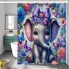 Schwarzer Duschvorhang Lebensbaum Himmel Elefant Neon Stoff Pflanze Fantasy Kunst Badezimmervorhang für Frauen Badewannendekoration