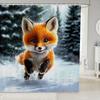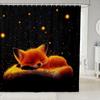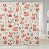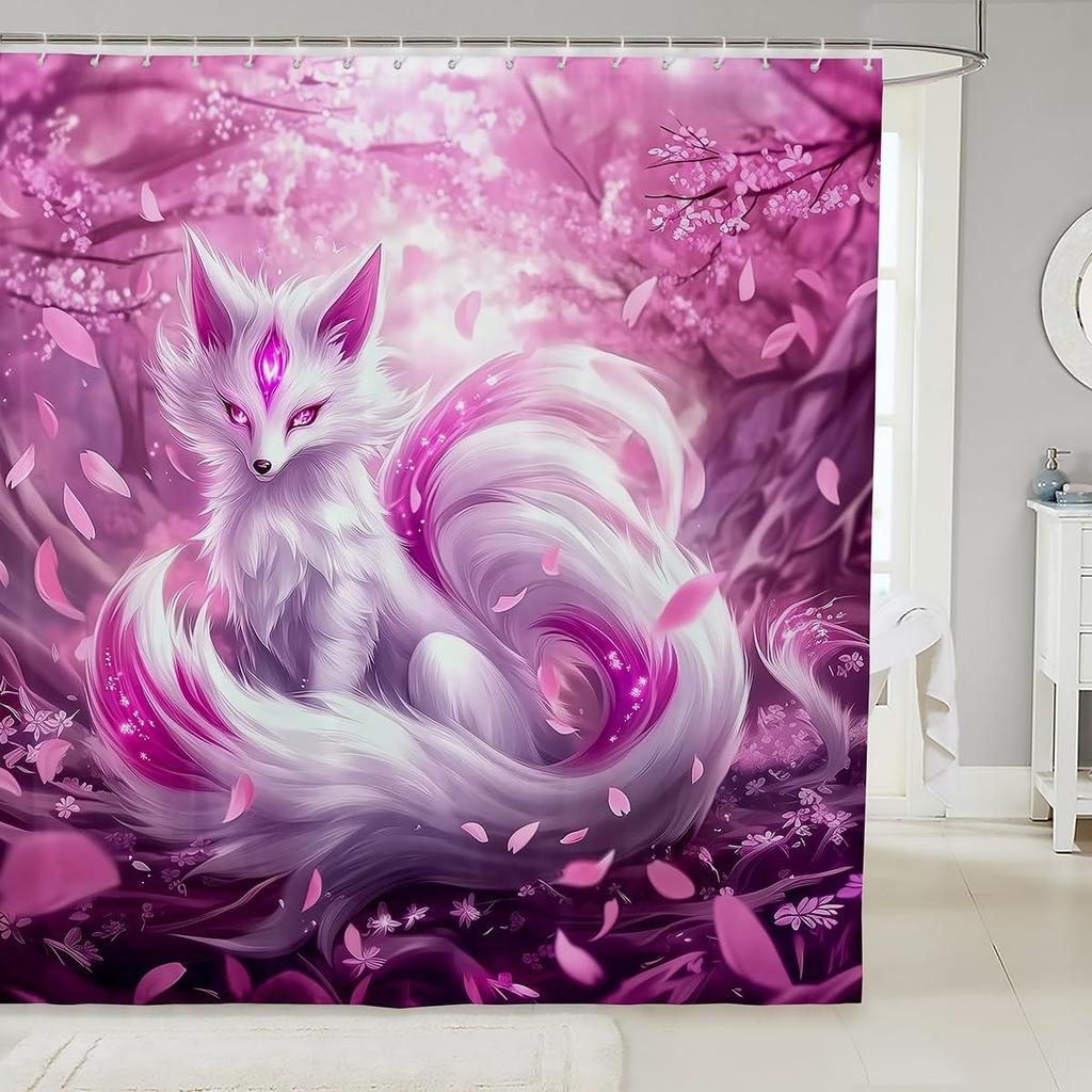 Pink Fox Shower Curtain Japanese Cherry Blossoms Bath Curtain Girls Teens Cute Cartoon Bathroom Shower Curtain Set Waterproof