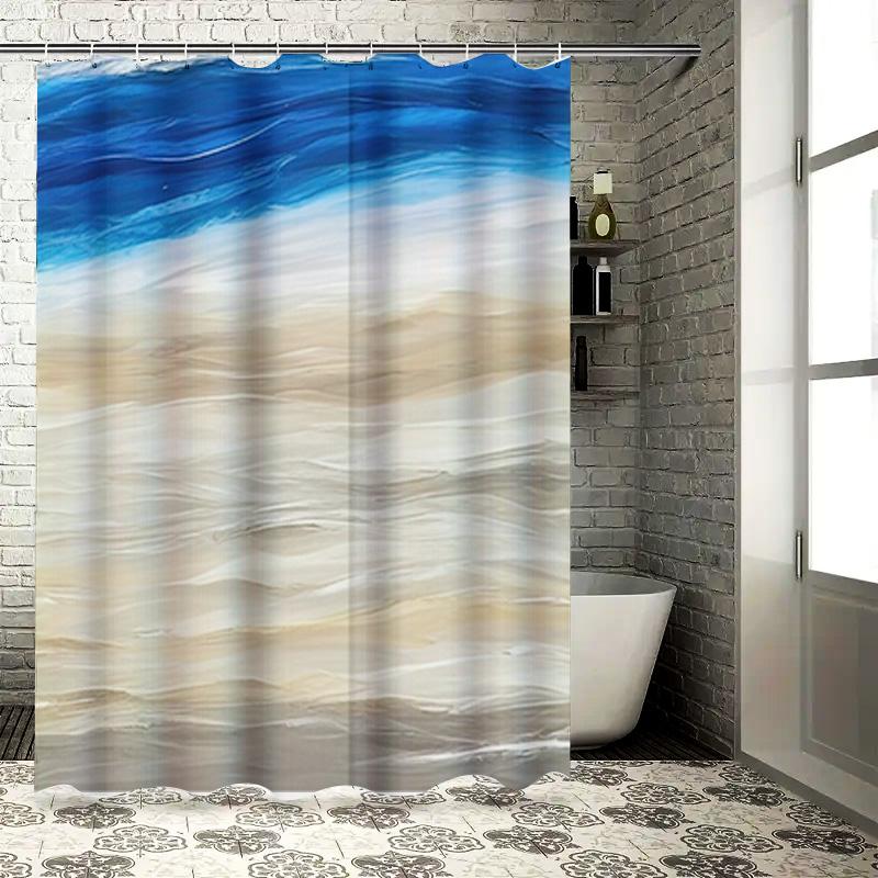Blauer und weißer abstrakter Duschvorhang mit Strandszene zur Badezimmerdekoration Bedruckter Duschvorhang Wasserdichter Stoff Größe 180X200