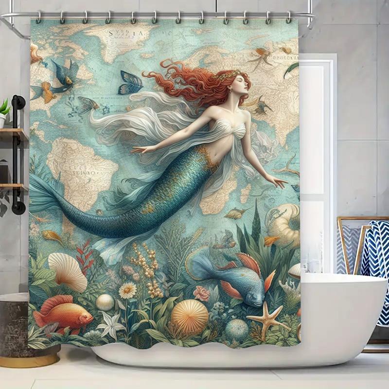 Unterwasser Meerjungfrau Duschvorhang Ozean Marine Dekorativer Stoff Kundenspezifisch bedruckt für Zuhause Badezimmer Wasserdicht Leinen Wasserdicht B