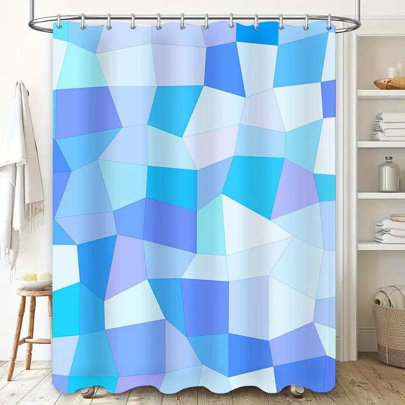 Blauer Geometrischer Design Duschvorhang, Badezimmerdeko, Polyestergewebe, Moderner Dekorativer Shoji-Schirm, Einfache Installation Für