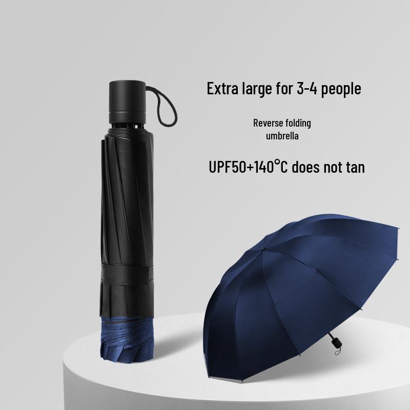 Extra Großer Verstärkter Sturmfester Faltbarer Regenschirm für Sonne und Regen - Schwarzkleber 3-Personen Studentenmodell